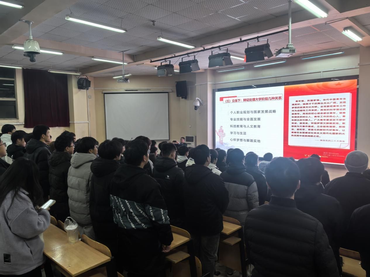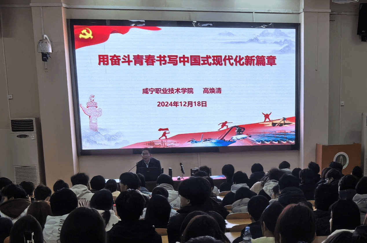 2024年12月18日晚,学校党委书记高焕清在励志教学楼201教室,为2024级建筑工程技术与智能建造技术专业学生带来了一堂具有里程碑意义的形势与政策课——“用奋斗青春书写中国式现代化新篇章”。