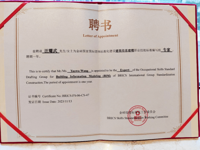 大会上,中国科学院院士宋振骐、金砖国家工商理事会(中方)技能发展工作组组长刘振英等专家作了主题报告。大会审议通过了“一带一路”暨金砖国家技能发展国际联盟工程建造技术专业委员会名单,我校成功入选该委员会委员,汪耀武被聘为金砖国家国际团体标准化建设“建筑信息建模”职业技能标准编写组专家。