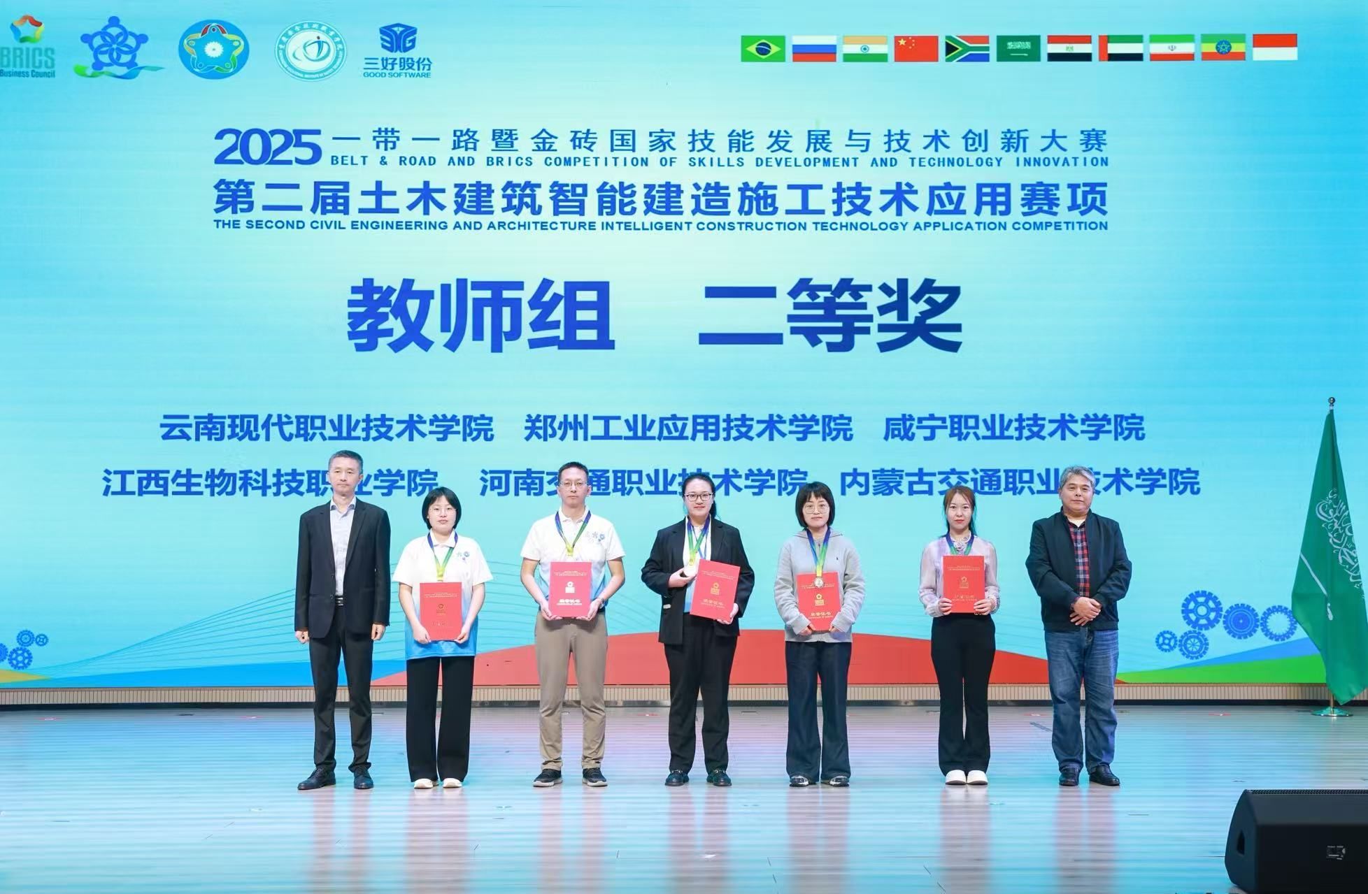 10月17日至19日,2025“一带一路”暨金砖国家技能发展与技术创新大赛之第二届土木建筑智能建造施工技术应用赛项决赛在重庆安全技术职业学院隆重举行。澳门网投十大信誉平台教师李瑶鹤、陈凯凭借扎实的教学功底与创新的教学设计,在教师组中脱颖而出斩获二等奖;学生佘功明、程梦园历经多轮选拔的激烈角逐,凭借过硬的专业技能与顽强的拼搏精神,摘得高职学生组三等奖。师生携手在国家级赛事舞台上再次为学校赢得了荣誉。