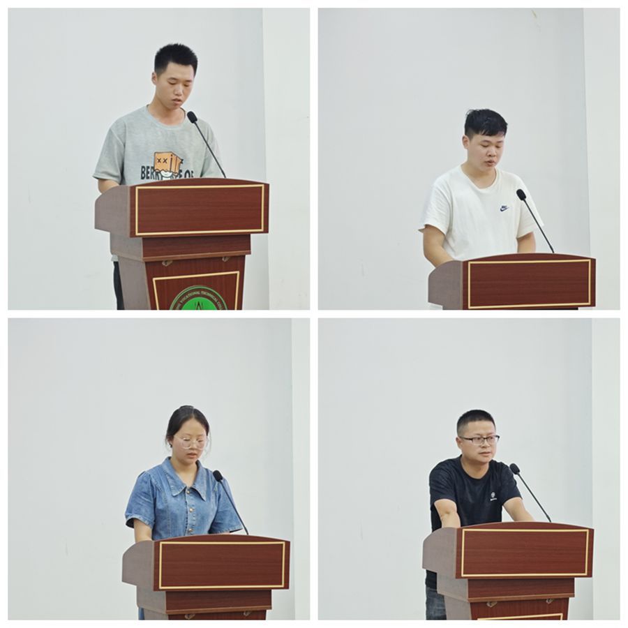 紧接着,毕业生党员代表金汉斌、吴帅、雷昕、刘振宇四位同志依次进行述学述做。他们详尽地阐释了个人之基本情况,满怀热忱地分享了学习党的理论之心得以及实践之体验。