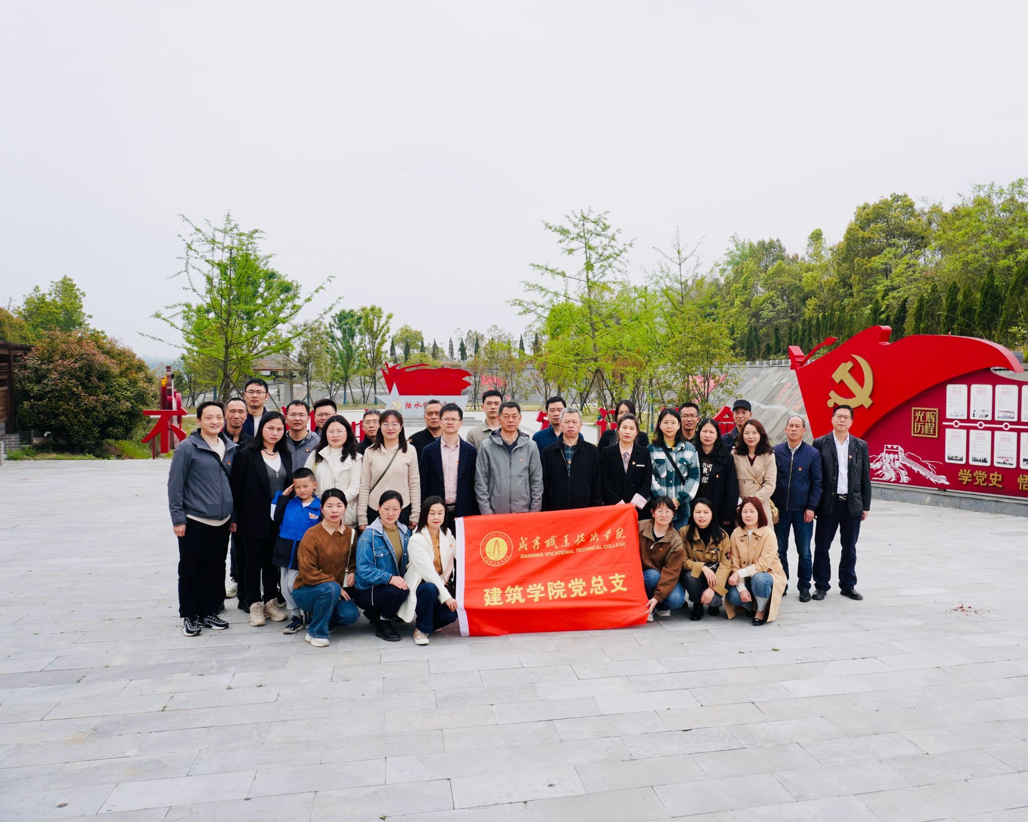 上午9时许,全体人员从陆水红源入口处列队,缓步来到烈士陵园革命烈士纪念碑前,肃立、默哀、敬献花篮并鞠躬致敬,并在烈士纪念碑前重温入党誓词。悼念仪式结束后,大家来到烈士墓区,擦拭墓碑,穿过党史文化长廊,大家集中参观了李先念革命纪念园,到达红源广场并合影留念。