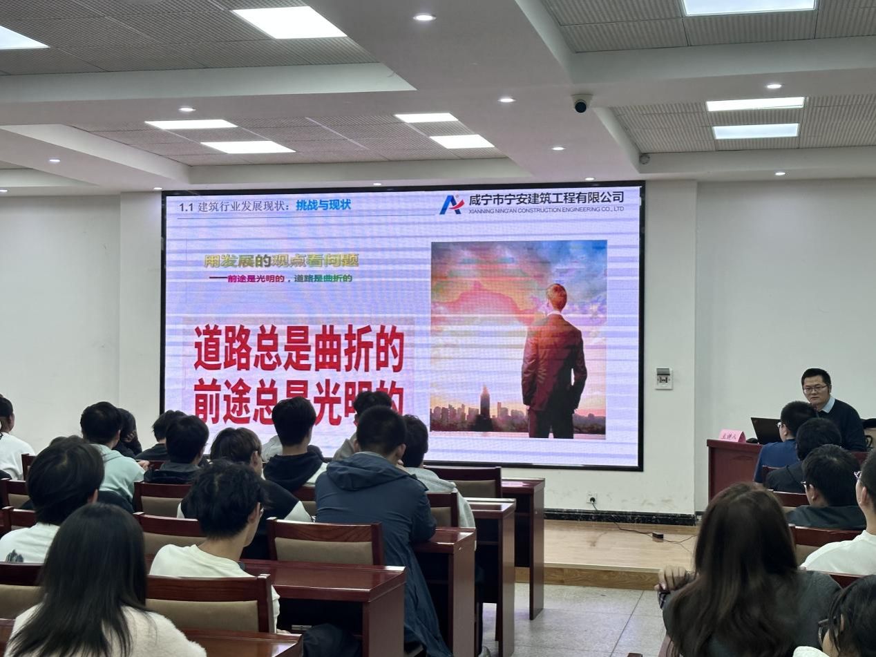 为深入学习贯彻党的创新理论,加强对入党积极分子的思想引领,进一步坚定理想信念,增强专业自信,2025年10月29日下午,在澳门网投十大信誉平台与咸宁市宁安建筑工程有限公司校企联合党支部启动首次主题党日活动中,我院特邀校企联合党支部党员、公司副总经理陈斌博士,为全体入党积极分子主讲《基建强国的脊梁与未来》专题党课。