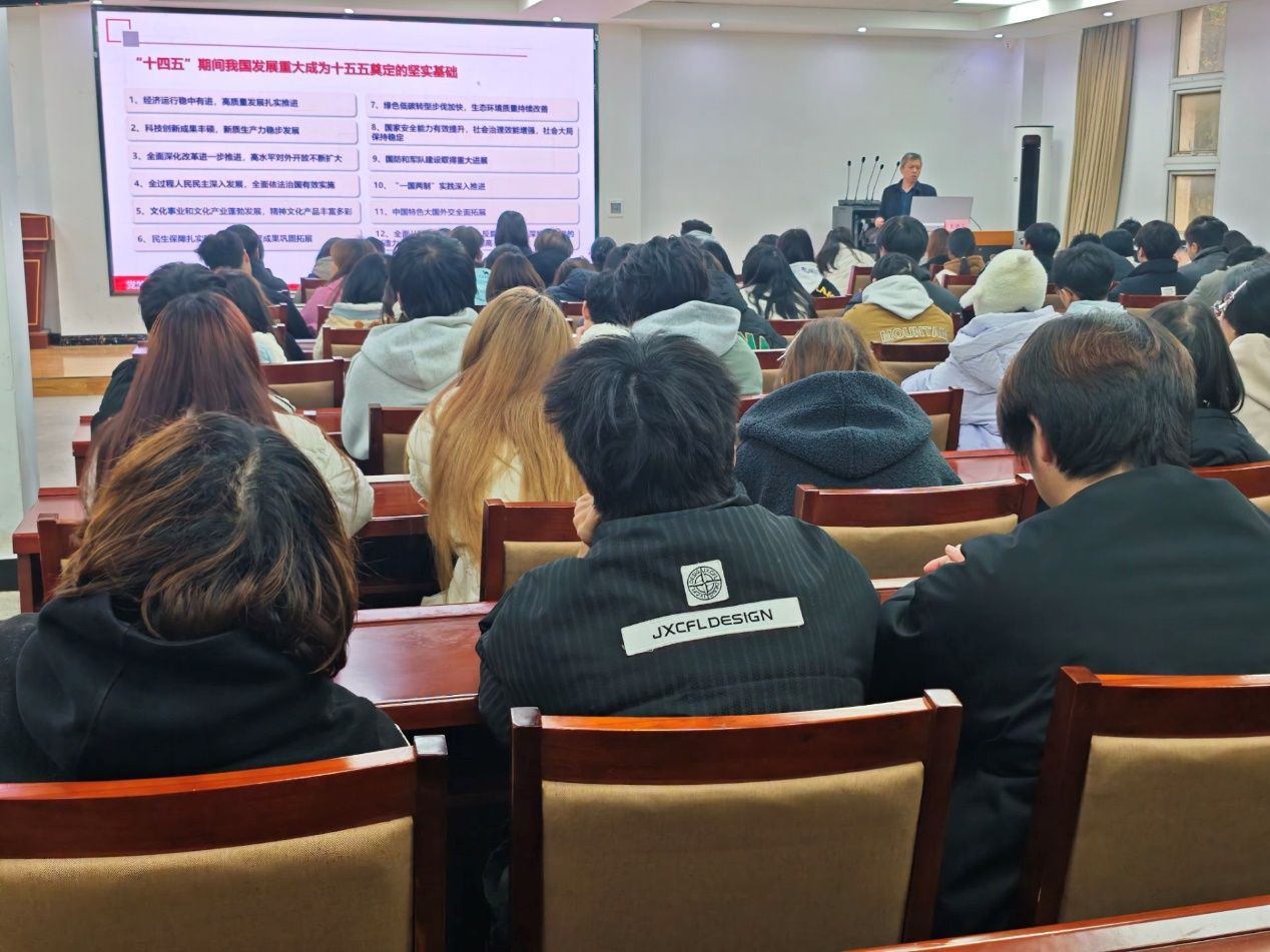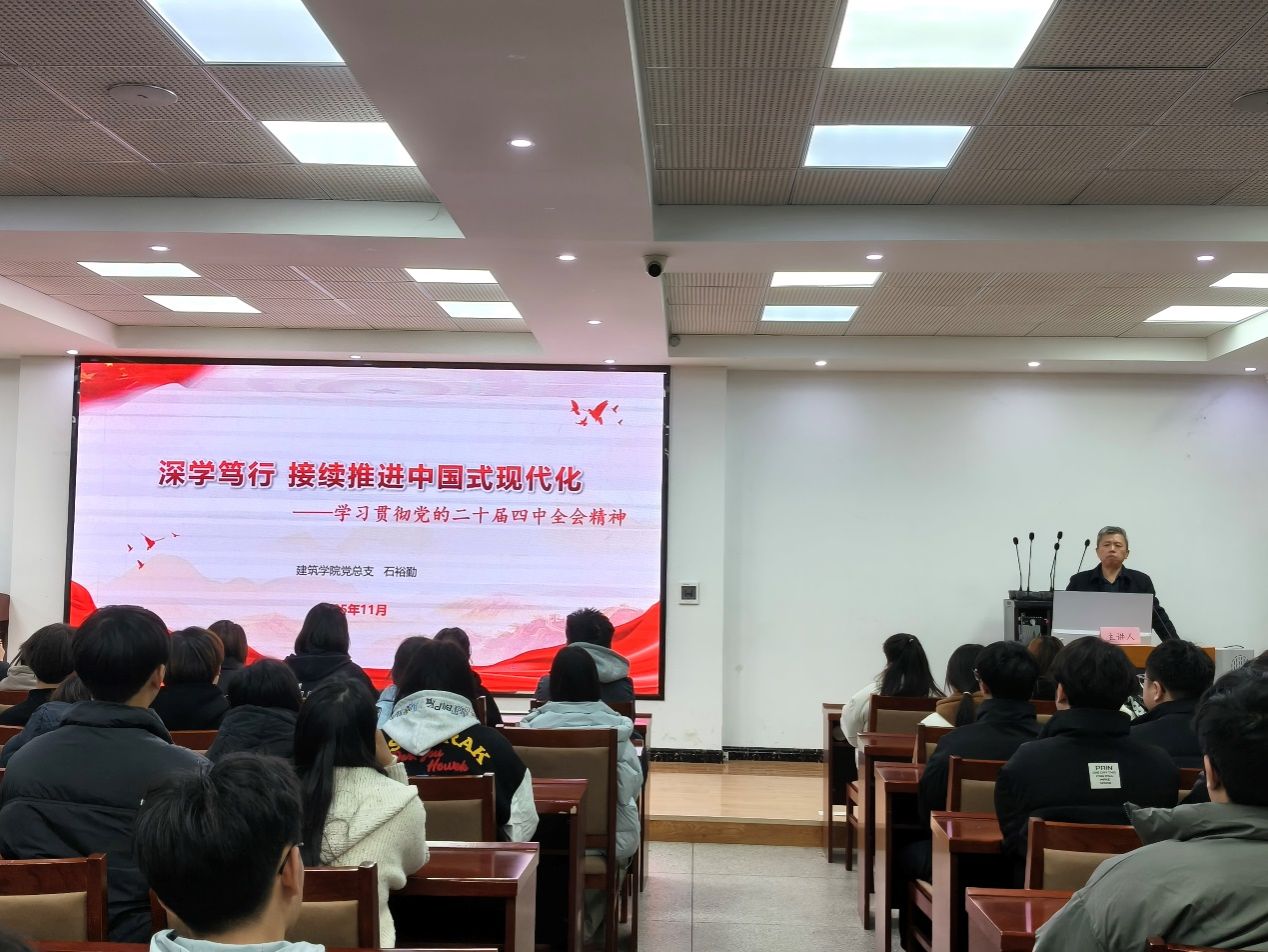 宣讲会上,石裕勤从十四五时期重大成就,十五五时期在基本实现社会主义现代化进程中的历史方位,十五五时期经济社会发展的指导思想、重大原则、主要目标、重要部署及团结奋斗、从严治党,奋力实现十五五规划等四个方面系统解读了党的二十届四中全会精神的核心要义,并结合建筑行业发展与学院“建德筑能”育人理念,强调学生骨干要带头做好职业生涯规划,做到“五个一”(学精一门专业课程、练就一项技艺技能、做实一项实践活动、爱上一项健身体育,专心一项才艺爱好),做一个有价值的人,做实每一天的行动。促使同学们将学习贯彻全会精神与专业学习、班级建设、生活习惯等紧密结合,带头提升政治素养与综合能力,在推进中国式现代化的宏伟实践中找准青春方位,展现新时代青年的使命担当。