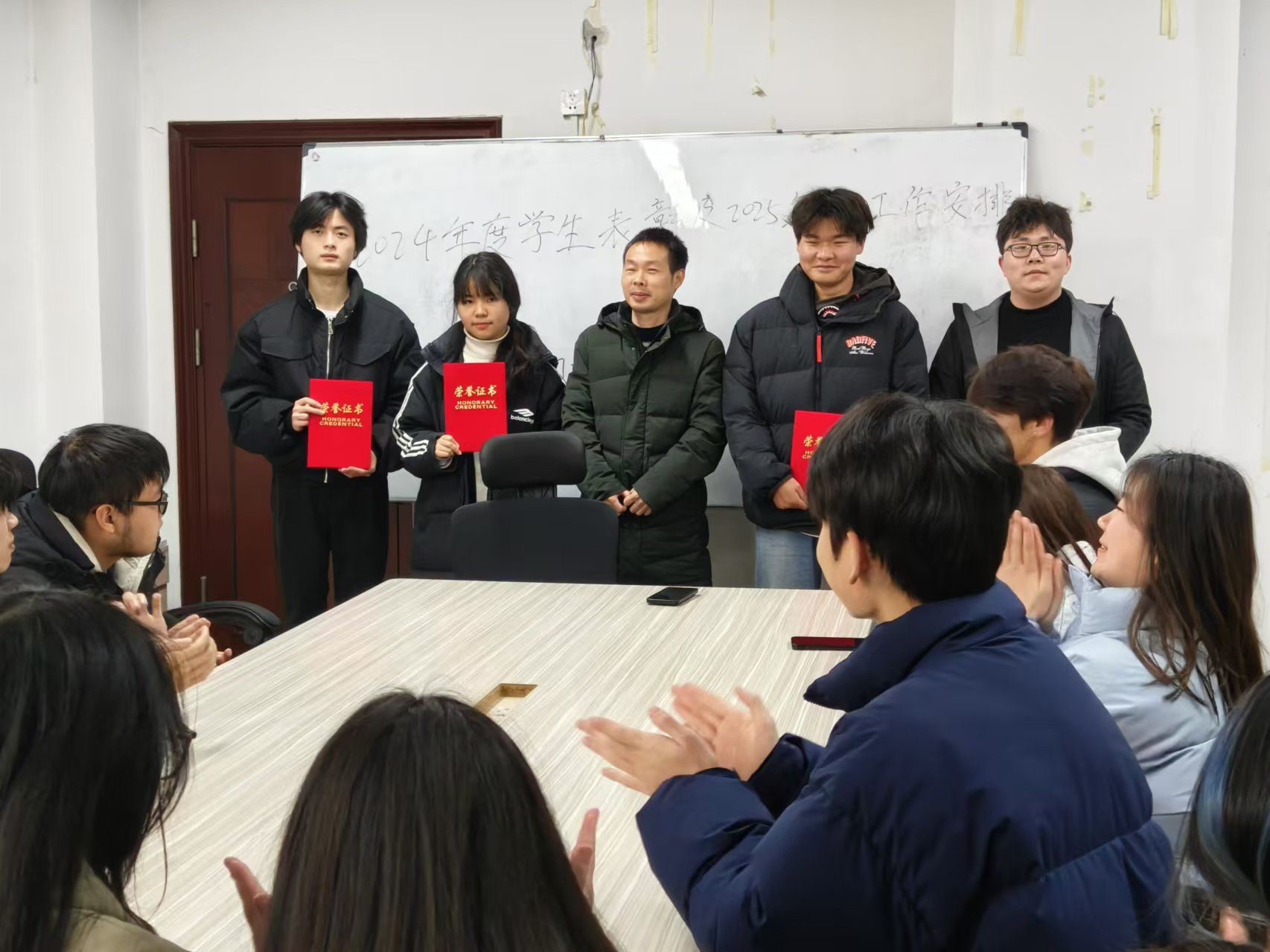 在表彰环节,经学院领导同意,工作室对过去一年在学业成绩、志愿服务、团队协作等方面表现突出的优秀学生进行了表彰。这些同学在各自的领域发光发热,用实际行动诠释了追光育人工作室 “自信自强,互助共进”的精神内涵: