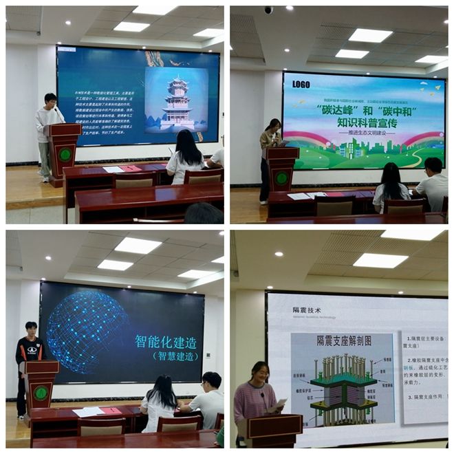 “隔震建筑”、“智能化建造”、“无人机摄影测量”、“天才的发明——芯片”、“碳达峰和碳中和”……讲解主题丰富多样,涵盖建筑材料、智能建筑、人工智能、环境保护等10多个主题。选手们使出了浑身解数将各种科学话题与多媒体相结合,通过通俗诙谐的讲述,趣味横生的演绎了高深难懂的科学知识。经过一番激烈角逐,最终,来自2022级工程测量技术一班的刘贞贞获得一等奖。