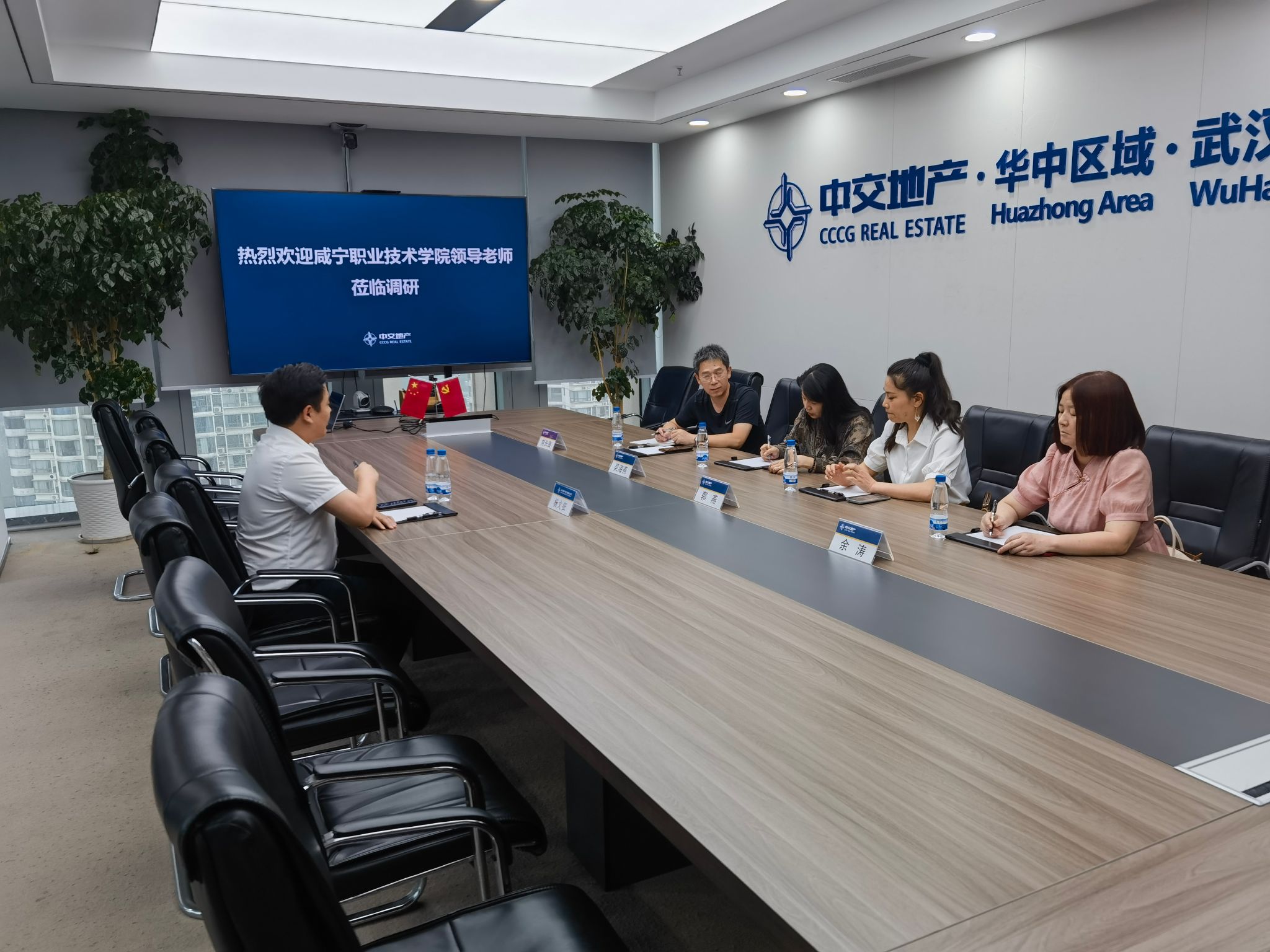 杨文征校友对老师的到来表示诚挚欢迎,并对母校近年来的发展成就感到自豪。交流中,他深情回忆了自己在母校的求学时光,并表达对母校的培育的感激之情。他详细介绍了中交地产华中区域武汉公司的发展历程、企业文化以及未来的发展战略,指出随着科技的不断进步和市场竞争的日益激烈,企业对于具有创新思维和专业技能的人才需求越来越高,希望迈入大学校门的新同学一定要改变中学应试教育的学习方式,养成自主学习的良好习惯,将学习放在首位,多考证、提升学历、多了解社会、参加实践,锻炼培养各方面的能力,成为高层次、高素质的一代新人。