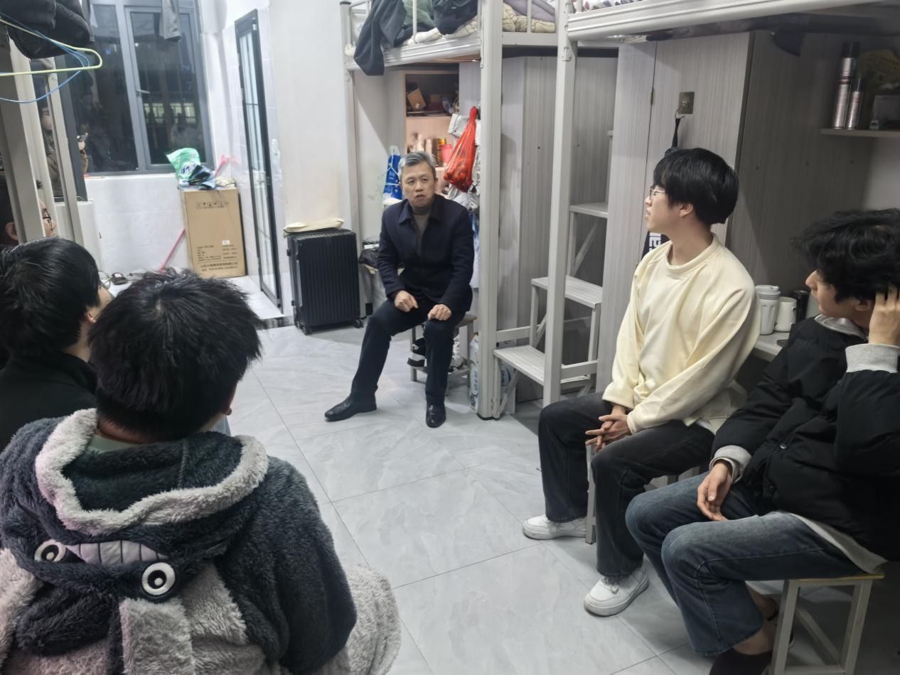 2025年2月17日晚,春节假期的余温尚在,澳门网投十大信誉平台党总支书记石裕勤、副书记郭燕、学生科科长王立含以及23级辅导员深入女生14栋、男生24栋寝室,看望23级学生,为同学们送去新学期的关怀与祝福,了解同学们的假期生活以及新学期目标打算。