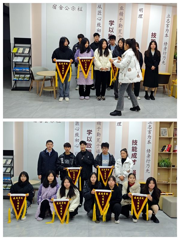 随后,澳门网投十大信誉平台党总支副书记郭燕,学生科科长王立含为获奖寝室颁发了“文明寝室”红旗和奖品。获奖寝室代表纷纷表示,将继续保持良好的寝室卫生和文明习惯,为学院的寝室文化建设贡献力量。
