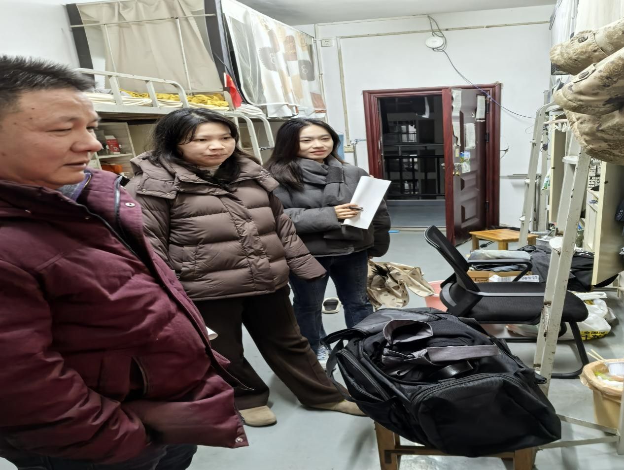 为深入贯彻落实学校《关于进一步加强校园消防安全管理的通知》要求,切实保障学生生命财产安全,1月3日晚20:30,澳门网投十大信誉平台副书记饶玮率全体辅导员,对1、4、11、13、14、21、22、24等重点楼栋开展全覆盖宿舍安全排查,覆盖专科生及大三实习生寝室。