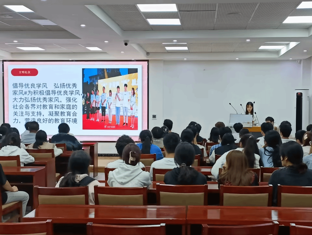 为了进一步推进文明校园建设,提升建筑学子的文明礼仪素养、道德品质和公德意识,构建和谐文明的校园环境,澳门网投十大信誉平台于2024年10月14日下午在建筑楼211教室成功举办了“文明礼仪规范及行为习惯养成”培训活动。此次活动由督学部李亦菲同学和宿舍文化建设部谭金晓同学担任主讲人,吸引了众多建筑学子的积极参与。