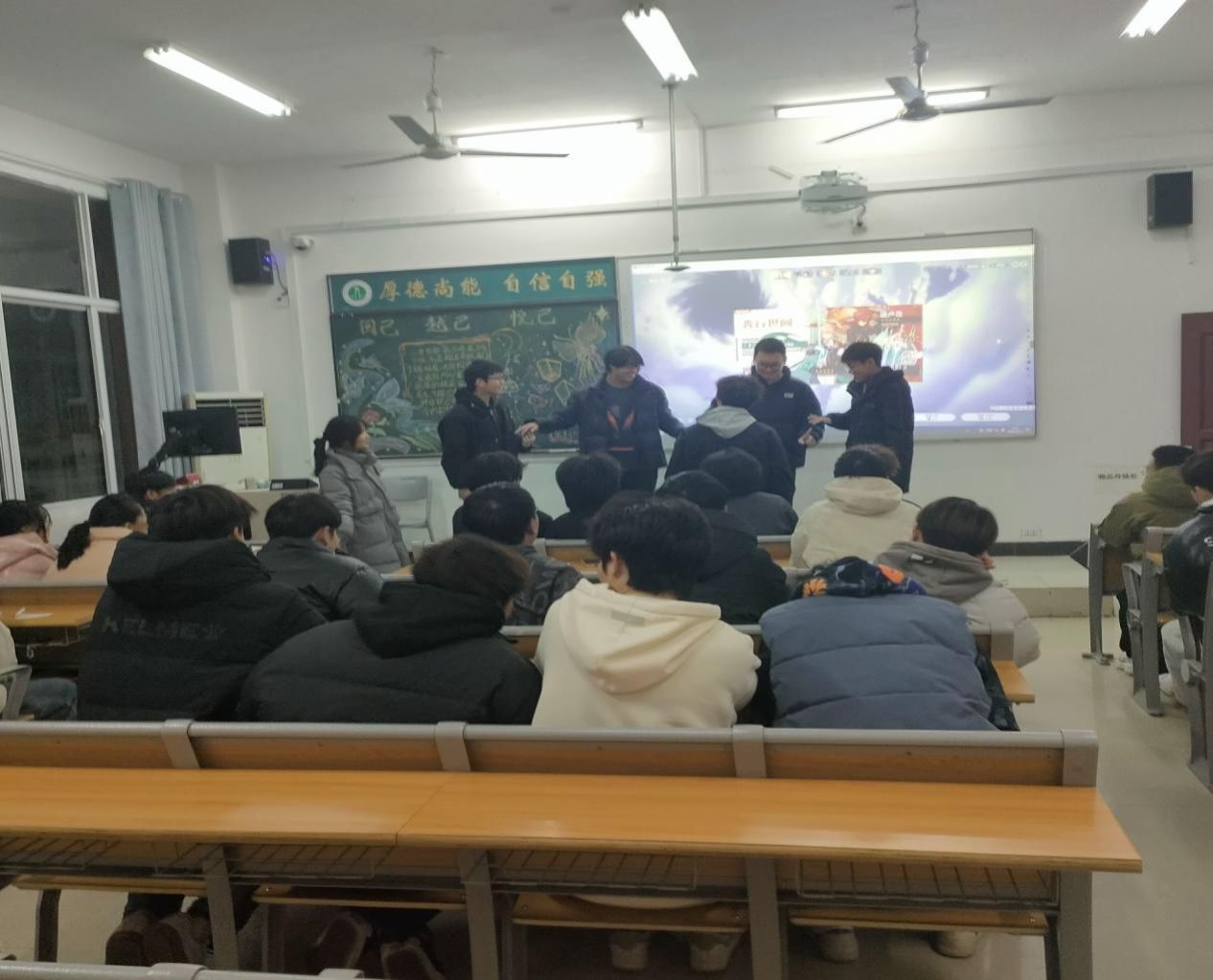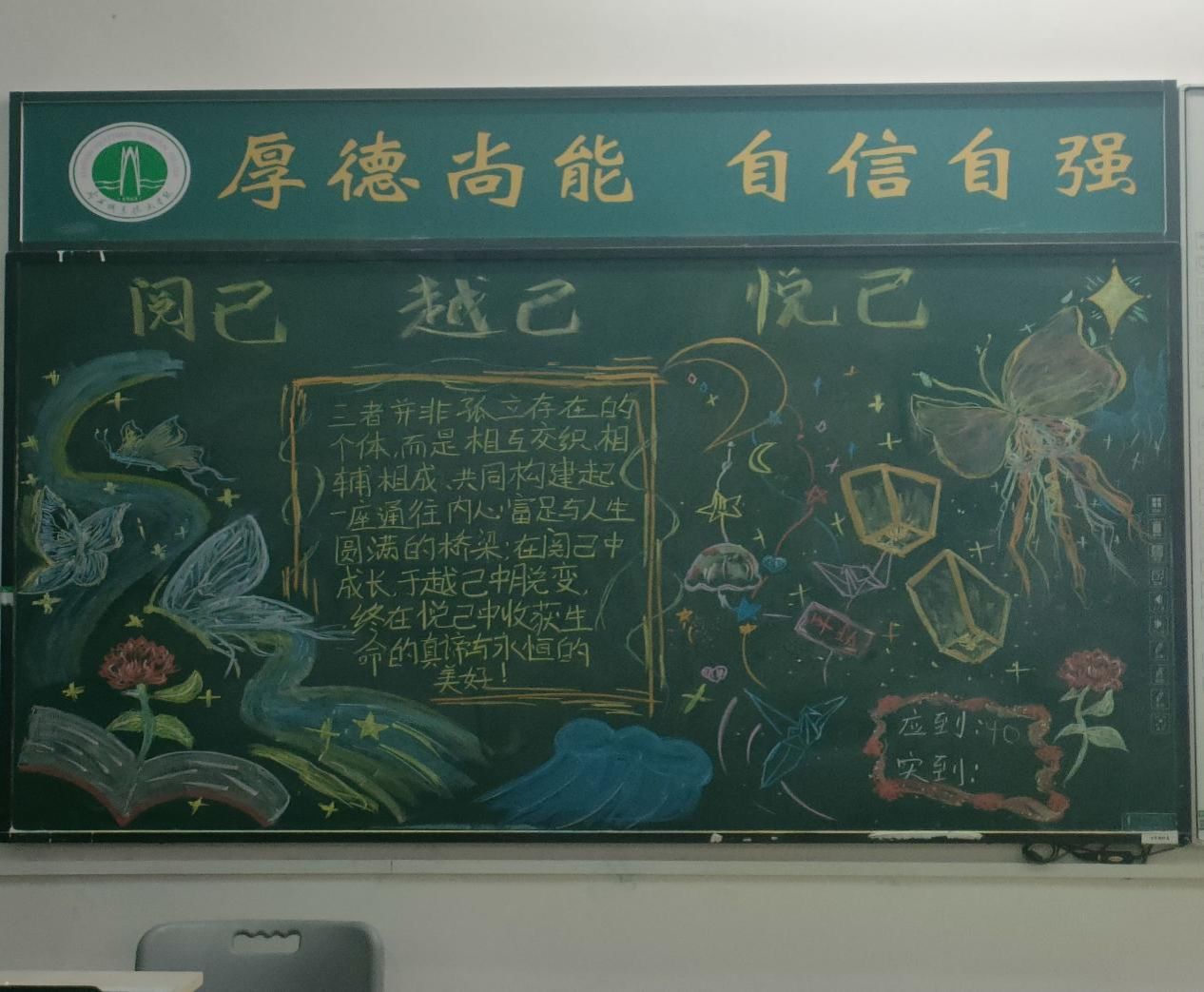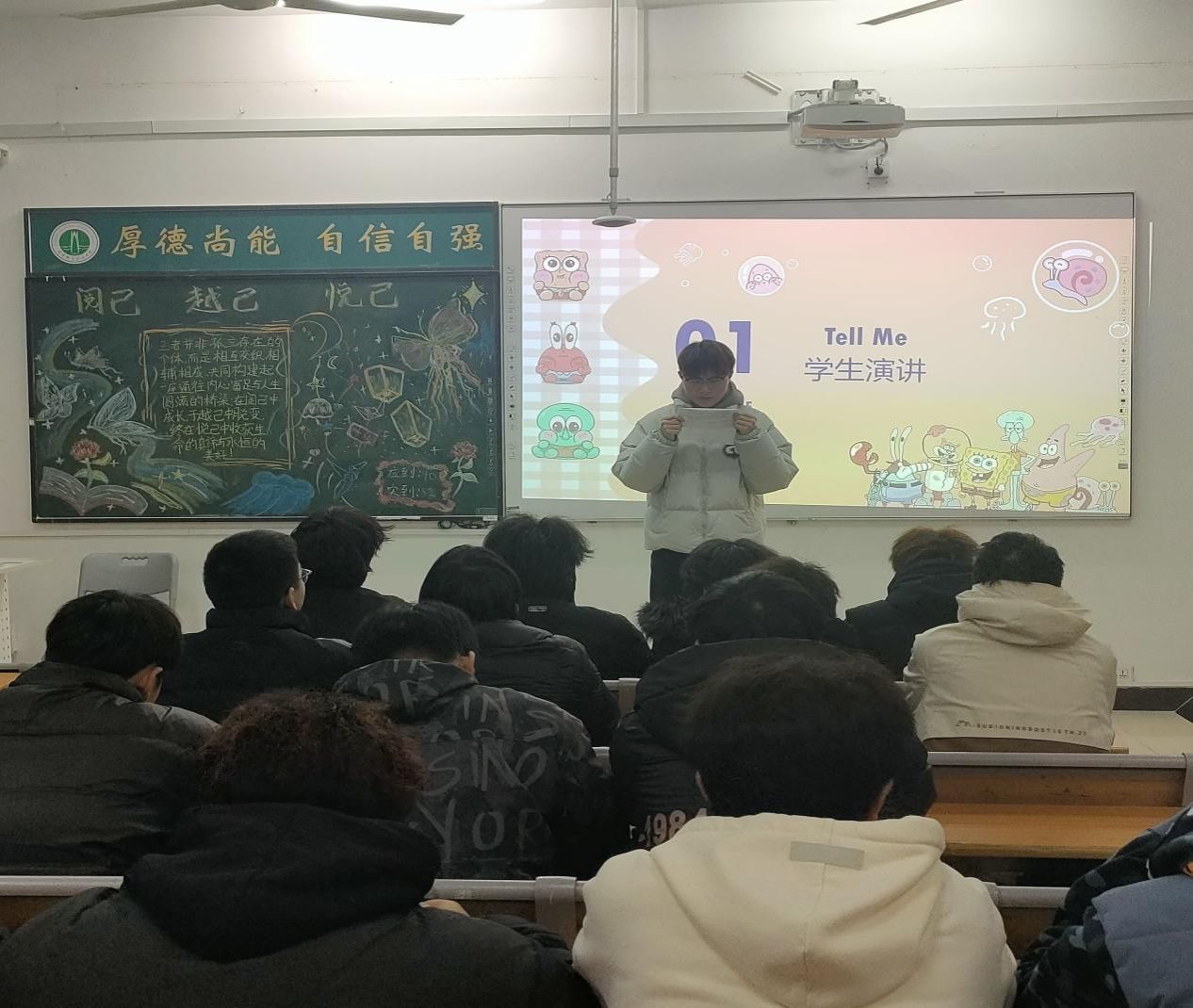 班会伊始,主持人通过讲解PPT,以曾国藩和王阳明的人生经历为切入点,深入阐述了“阅己”、“悦己”和“越己”的深刻内涵。曾国藩在事业低谷期通过反思和阅读《道德经》,领悟到“柔弱胜刚强”的处世智慧,实现了人生的重大转折。王阳明则在被发配贵州龙场的困境中,悟出了“圣人之道,吾性自足”的心学精髓,超越了自己,找到了真正的方向。随后,两名学生代表就本次心理主题进行了演讲,他们不仅告诫自己,也告诉同学们低谷和迷茫是成长的契机,只有勇敢面对自我,才能突破困境,实现自我成长。其中一位学生表示:“季羡林先生的故事让我明白,要勇敢地做自己,不必过分在意他人的眼光。”