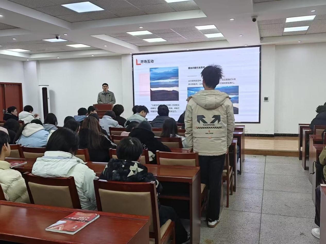 王老师指出,在大学这个充满活力与变化的特殊阶段,恋爱不应仅仅是情感的吸引,更应成为情感成长与自我发现的重要途径。他强调,恋爱如同一把双刃剑,若能正确对待,它将为青春注入动力,成为成长的助力;反之,则可能成为前行的阻碍。围绕恋爱的本质、常见心理现象及应对方法,王老师展开了深入浅出的讲解。他用生动形象的语言,结合贴近学生生活的案例,深入剖析恋爱中的“理想化”“依赖”和“嫉妒”等常见心理现象。当讲到“理想化”时,他举例说明一些同学在恋爱初期往往会将对方想象得完美无缺,忽视其缺点,但随着相处深入了解,这种理想化的幻想可能会破灭,从而引发情感冲突。对于“依赖”心理,他分析了过度依赖对方会导致个人失去独立性,影响自身成长和发展。在讲解“嫉妒”时,他指出嫉妒情绪若处理不当,可能会破坏恋爱关系的和谐与稳定。针对这些心理现象,王老师为同学们提供了实用且有效的应对建议,教导他们在恋爱中应保持独立性,学会理性沟通与妥善处理冲突,同时关注自我成长,尊重彼此的边界。
