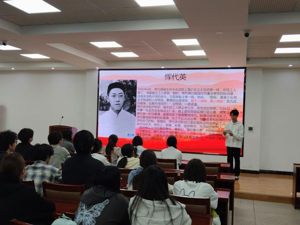 活动最后,主讲人为同学们科普了历史人物恽代英的生平事迹,解读他面对艰难险阻仍坚守信仰的精神内核。团员们深受触动,结合自身学业和未来职业规划,表达了以恽代英精神为榜样,努力学习、拼搏奋进的决心。