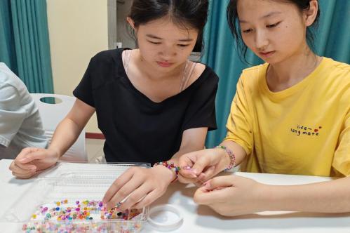 随着时间的推移,一件件独具匠心的串珠作品逐渐成型。看着自己亲手制作的作品,同学们脸上洋溢着自豪和满足的笑容。“平时学习压力比较大,这次串珠活动让我静下心来,沉浸在创作的乐趣中,感觉特别放松。” 一位参与活动的同学说道。