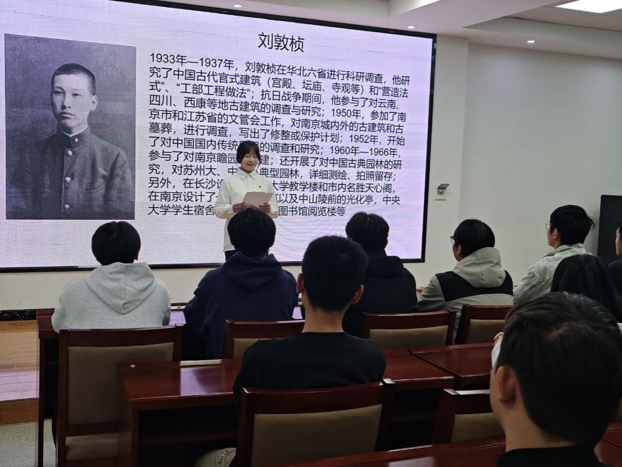 澳门网投十大信誉平台团支书代表以“薪火红途 青春知行”为主题展开专题讲座,通过珍贵史料和鲜活案例,生动讲述了共青团在不同历史时期的奋斗故事,并着重讲述建筑先贤刘敦桢的事迹与学术贡献。
