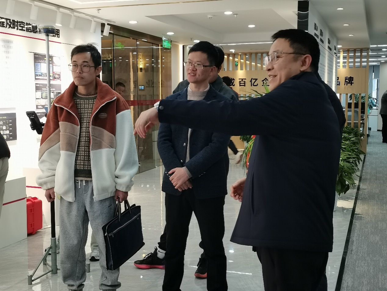 最后,老师们来到武汉点云智绘科技有限公司走访。双方开展深入交流,公司负责人吴镇山介绍了业务领域、技术创新、员工培养等方面的情况,伍根介绍了学院专业群建设和项目式教学实践情况。双方就建筑测绘技术的最新动态、应用场景及未来发展方向进行了热烈讨论,并就学生岗位实习和实践教学等合作事宜达成共识。