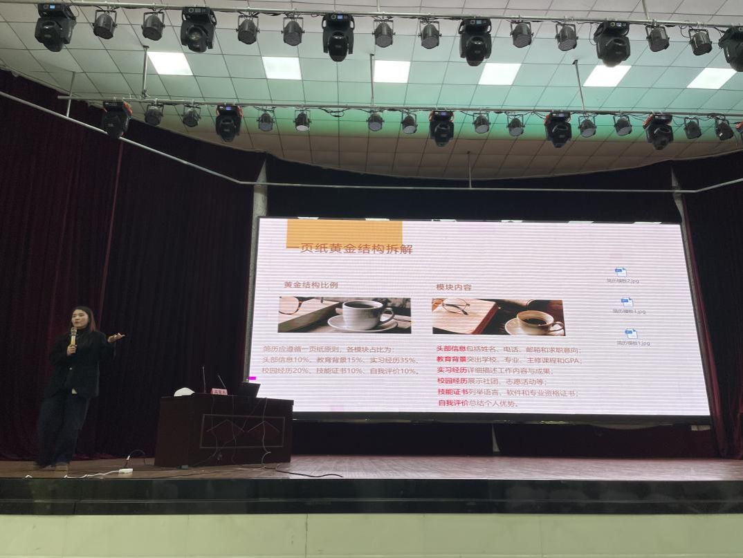 首场讲座以“毕业启航,职击未来”为主题,高慧杰经理系统解析简历制作要点,强调“简历应突出岗位匹配度”,从排版逻辑、关键词提炼到成果量化,通过案例对比直观展示优质简历的撰写策略。在面试技巧模块,她重点讲解STAR法则,指导学生如何通过结构化表达展现个人优势。结合行业需求,她指出碧桂园服务等企业对复合型人才的重视,建议学生提前积累实习经验,培养跨领域能力。现场互动环节中,针对“跨专业求职”“实习经历选择”等高频问题,她提出“主动挖掘岗位核心需求,针对性提升技能”的建议,并鼓励建立动态能力提升机制,持续优化职业竞争力。