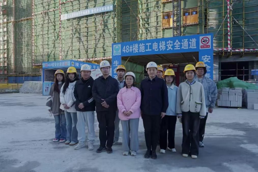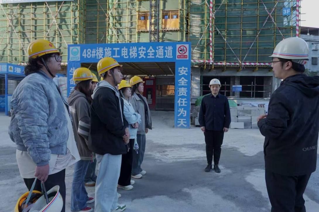 为将课堂理论教学与行业一线实践深度融合,11月26日下午,澳门网投十大信誉平台杨启凡、叶翔宇、吕露、柳颖老师及学工处郭燕老师带领24级室内设计技术专业7名学生代表,前往“龙栖蝶谷”二期住宅项目工地,开展了一场内容充实、富有启发的产教融合实践行活动。